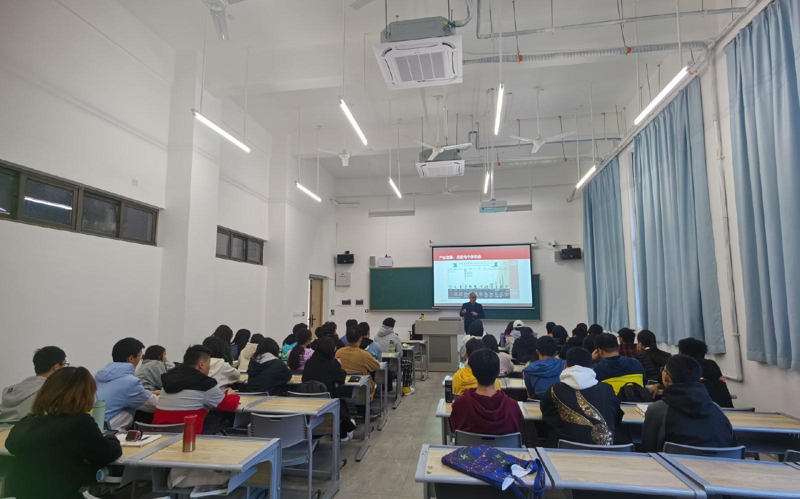 孙进军教授从产业发展进行详细阐述,以历史中人们普遍的职业选择为起点,引出了历史与个体选择的深刻思考,并结合同学对大学现状的迷茫,指出专业学习的重要性,使同学们得以启发。接着,孙教授列举几个贴近生活的实例,结合具体数据,引出了对统计学概率论的通用性见解,并联系当下社会人才就业与企业选才的真实状况,阐明老员工应该努力学习,积极全面发展的真理。