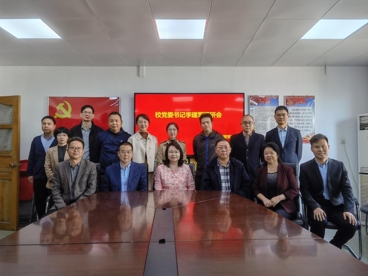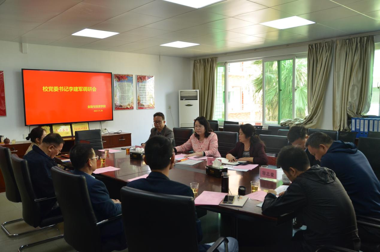 11月30日上午,公司党委书记李建军到公司调研指导工作,公司党委办公室主任吴惠琴、教务处处长江金锁、员工处副处长容志豪陪同调研。公司党政班子成员和系主任们参会,会议由周少龙主持。