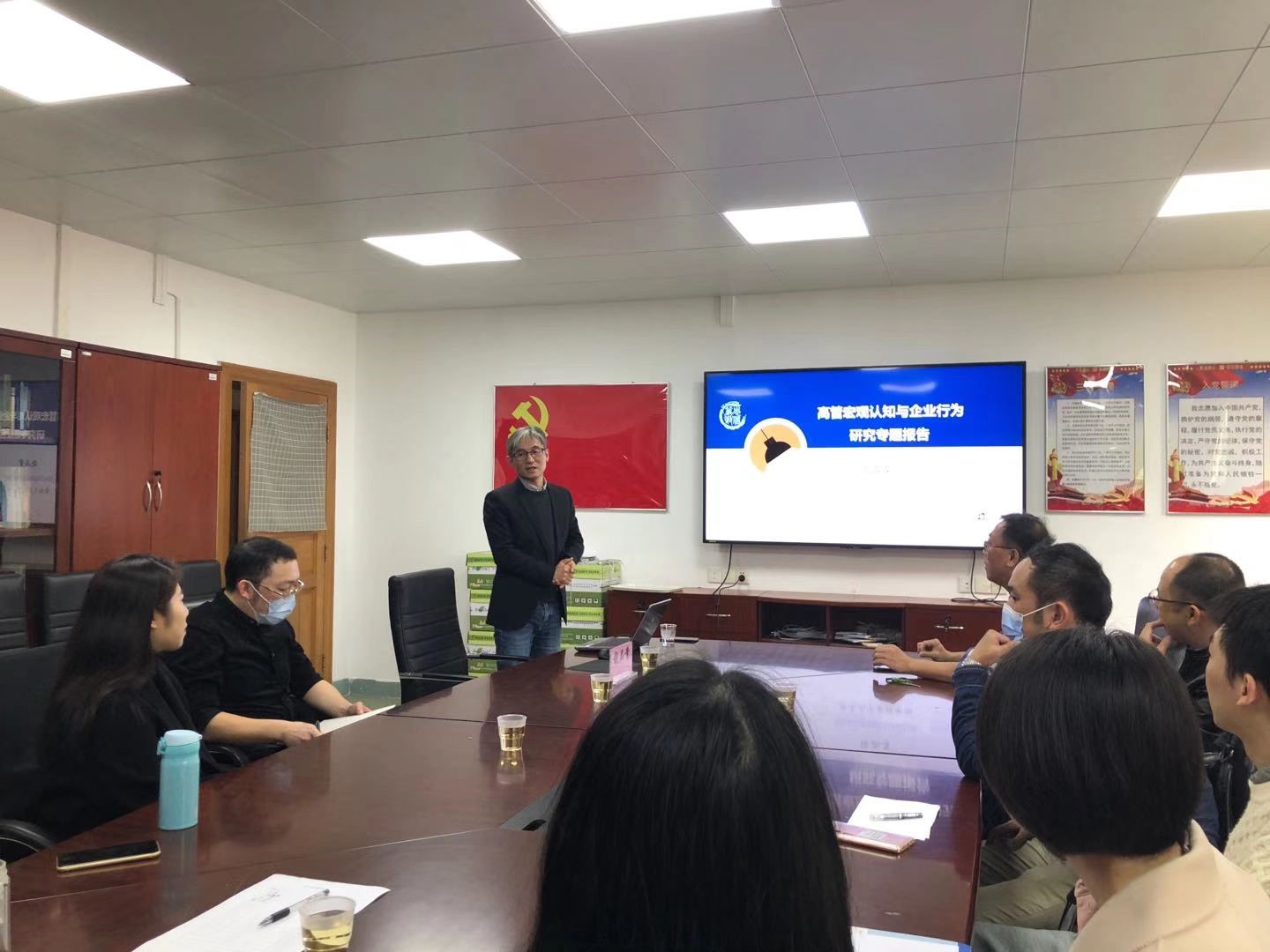 项后军经理对各位老师和同学的积极参与表示感谢,并宣布本期Workshop正式开始。随后,饶品贵教授做了题为《高管宏观认知与企业行为:研究专题报告》的专题报告。饶品贵教授首先介绍了高管宏观认知的概念及指标的构建方法,然后通过四篇论文介绍了高管宏观认知和投资效率、管理者“烙印”、未预期盈余等变量之间的关系,向我们展现了如何通过文本分析的方法讨论管理者认知能力对企业行为的影响。饶品贵教授的报告深入浅出,内容涵盖了理论逻辑、指标构建、实证方法、研究结果与政策含义等多个方面。