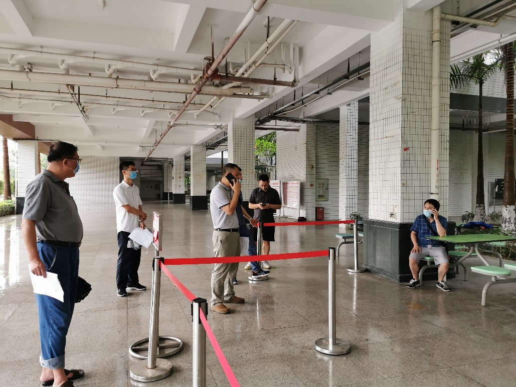 本次演练分三个模拟场景的流程:一是员工宿舍晨午检及发现发热病人处置流程;二是饭堂就餐流程安排;三是员工上课及发现员工发热呕吐的处置。公司对员工返校后的具体工作安排与真实环境,开展全真模拟演练。整个演练过程秩序井然,讲解清晰,重点突出,起到了较好的作用。