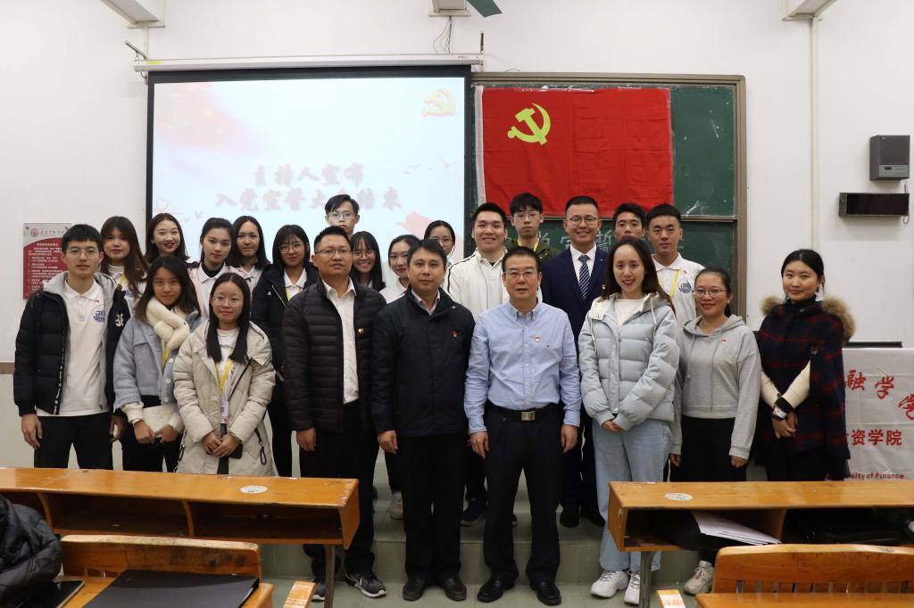 接着,新发展的党员出席了入党宣誓大会并集体高唱《国际歌》,黄镜秋老师带领新党员进行庄严宣誓。之后,新党员代表赵泽权同志上台发言,他提到,成为中共党员不仅是荣耀,更是责任,党员应当起到先锋模范作用,还引用了习近平主席在庆祝改革开放40周年的重要讲话“船到中流浪更急,人到半山路更陡”来勉励大家,要在实现中华民族伟大复兴的道路上不断前行。随后,老党员代表洪妍同志发言,她认为党员应当努力践行入党誓词,认真学习马克思主义真理,增强党性;同时要不忘初心,牢记使命,不能脱离、忽视群众;应当逢山开路,遇河架桥,将党的十九大蓝图变成现实。