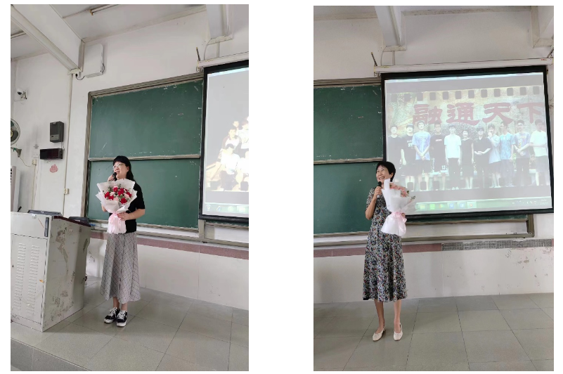 荣休仪式上,项后军经理向荣休教师献上了鲜花。屏幕上播放的一张张照片回顾着三位荣休教师在公司的奋斗历程,张纯威老师科研成果卓著,治学严谨,多年主管公司科研工作,劳苦功高;王梅老师是“行长+学者”的双师型教师,为公司实验教学做出巨大贡献,2018年获评全国高校经管类“优秀实验教师”;郑桂平老师爱生如子,兢兢业业,为高等教育事业奉献了38年的青春,见证了公司从专科升格为本科、并成功获批硕士学位授权单位的不平凡发展历程。