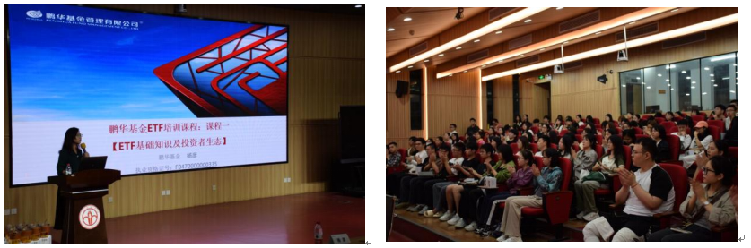 在首场讲座中,黄镜秋副书记致欢迎词,希望通过此次活动,同学们能深入了解投资理财的策略和技巧,为未来的金融市场注入更多的活力和智慧。随后,国信证券广州分公司专业投资顾问朱智勇、林亦涛和鹏华基金广州分公司区域总监杨彦莅临指导ETF交易规则和投资与基金的基础知识。