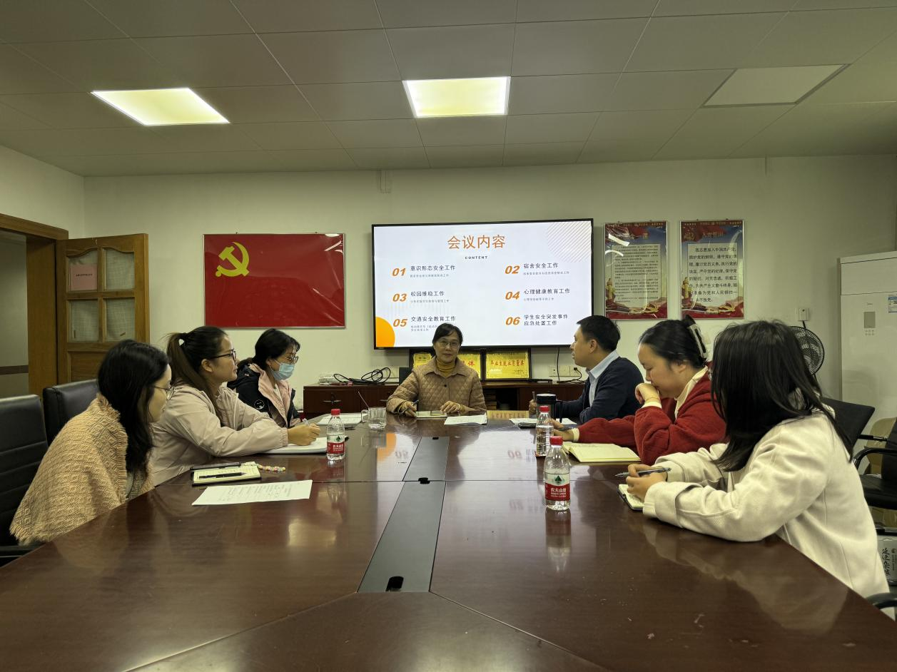 颜佩仪书记讲话强调beet365学工队伍要提高政治站位,充分认识安全工作重要性,学工队伍的员工安全工作要前移深入一线,注重日常的安全检查,及时排查隐患,避免发生安全事故,坚决遏制各类校园的安全事故发生,牢牢守住安全防线。
