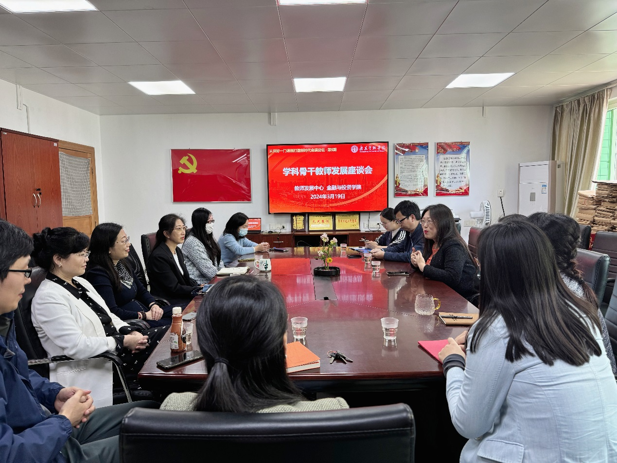 2024年3月19日下午2:30-4:20,为了推动公司教育高质量发展,围绕如何做好金课建设和倾听一线教师的心声,公司与教师发展中心联合举办了学科骨干教师发展座谈会。本次会议在院会议室举行,出席会议的有教师发展中心邢哲主任、许国栋博士等一行四人,公司出席会议的有刘昊虹副经理、金融系王颖主任、投资系胡妍主任、周向雯副教授、马飞副教授、吴辉凡副教授、陈雷副教授、吴梦菲博士和张一帆博士。