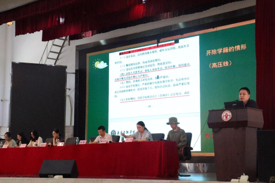第一项议程,由黄镜秋副书记围绕考风考纪的严肃性和重要性展开警示教育,首先黄镜秋副书记结合往年因考试违纪受纪律处分员工的个案和教训,进行诚信教育,强化员工纪律观念,加强学风建设。其次,对于考试纪律方面,黄镜秋副书记针对《员工手册》中的考试违纪行为认定与违规处理办法相关的条例进行了全方位和深层次的讲解,提示处分带来的各种影响,并多次提醒同学们敬畏校规校纪,积极备考,诚信考试。
