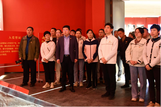 中国国家版本馆广州分馆位于从化区凤凰山麓、流溪河畔,这座集版本收藏、展示、研究于一体的文化殿堂,不仅承载着中华文明的深厚底蕴,也见证了华夏文化的繁荣。在讲解员的带领下,党员们进入主楼进行参观学习,先后参观了“红色印记·映照初心——红色广东专题版本展”“伟大时代的印记——改革开放以来精品出版物专题展”“千秋写印·华夏有章——中华版本发展概览”等展区,通过留存的典籍、绘画、照片等材料,认真学习了解中华版本的历史演变,沉浸式感受中华文化的源远流长和时代印记,深切体悟中华民族绵延五千年的文化血脉与历史传承。在讲解员的统一安排下,党员们面对党旗重温了入党誓词,再忆入党初心,进一步坚定了理想信念。