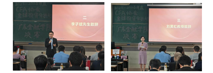 2025年10月25日上午九时,由CFA协会与公司联合主办的2025-2026年度CFA协会全球投资分析大赛beet365决赛(CFA Institute Research ChallengeGDUFFinal)在公司北教A304举行。CFA深圳协会专业顾问委员会委员李子斌先生、beet365副经理刘昊虹教授出席本次活动并致辞。决赛评委由广发证券机构客户部罗莹女士、广东德粤赑鑫私募证券投资基金合伙人周鑫先生、beet365金融学教师胡妍、李琰钰、杨睿博共同组成。