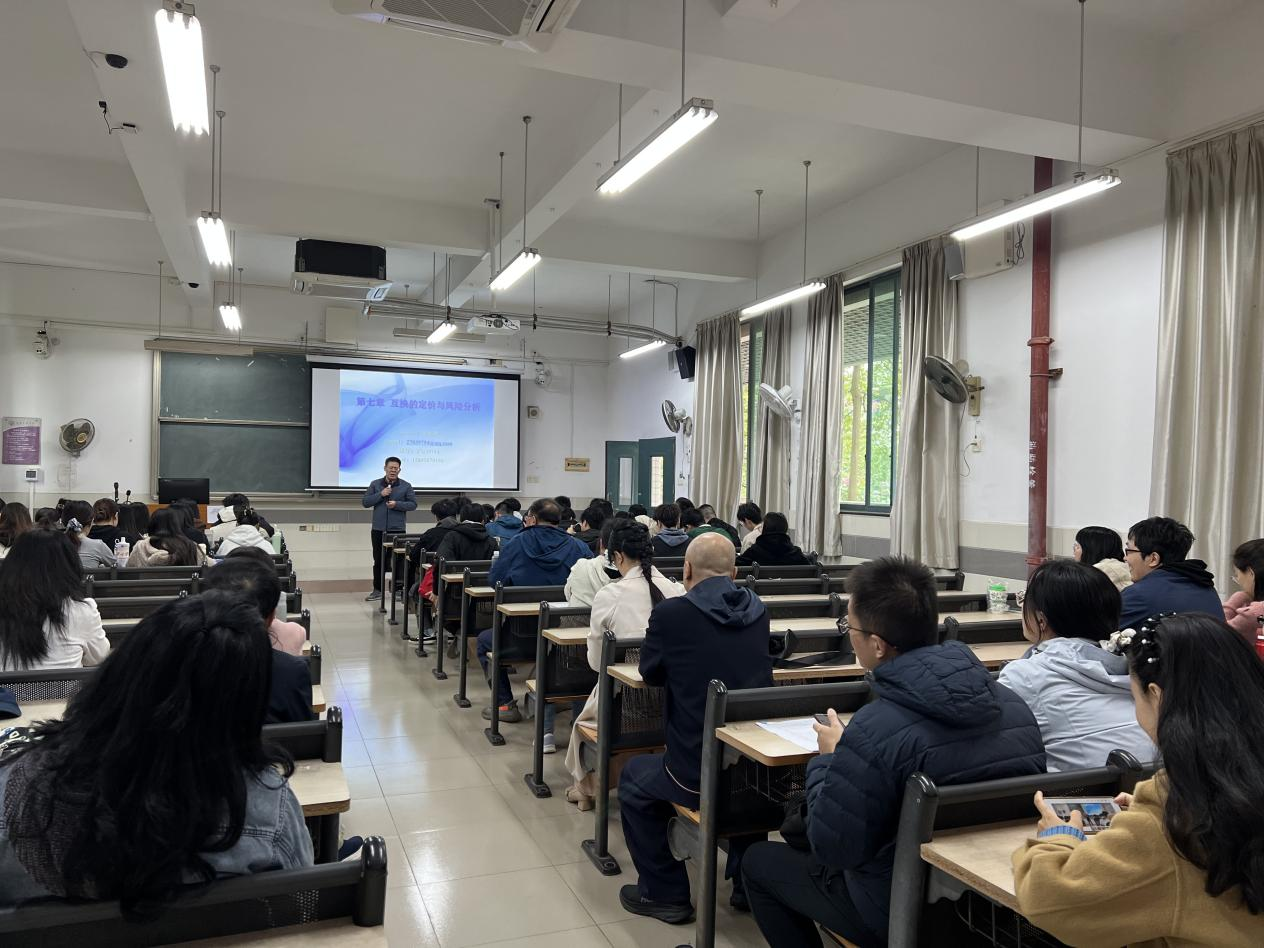 在观摩课之前,公司于11月19日(第12周周三)下午2点在北教A402教室组织了《金融工程》教学评议课,由彭俊华老师为23级金融学-3班授课。评议课采用“课前集体备课-课中教学展示-课后集中评议”的全流程模式,公司经理项后军、副经理刘昊虹、公司各系主任及青年教师参与,教学督导组组长陈天荣教授全程参与指导。
