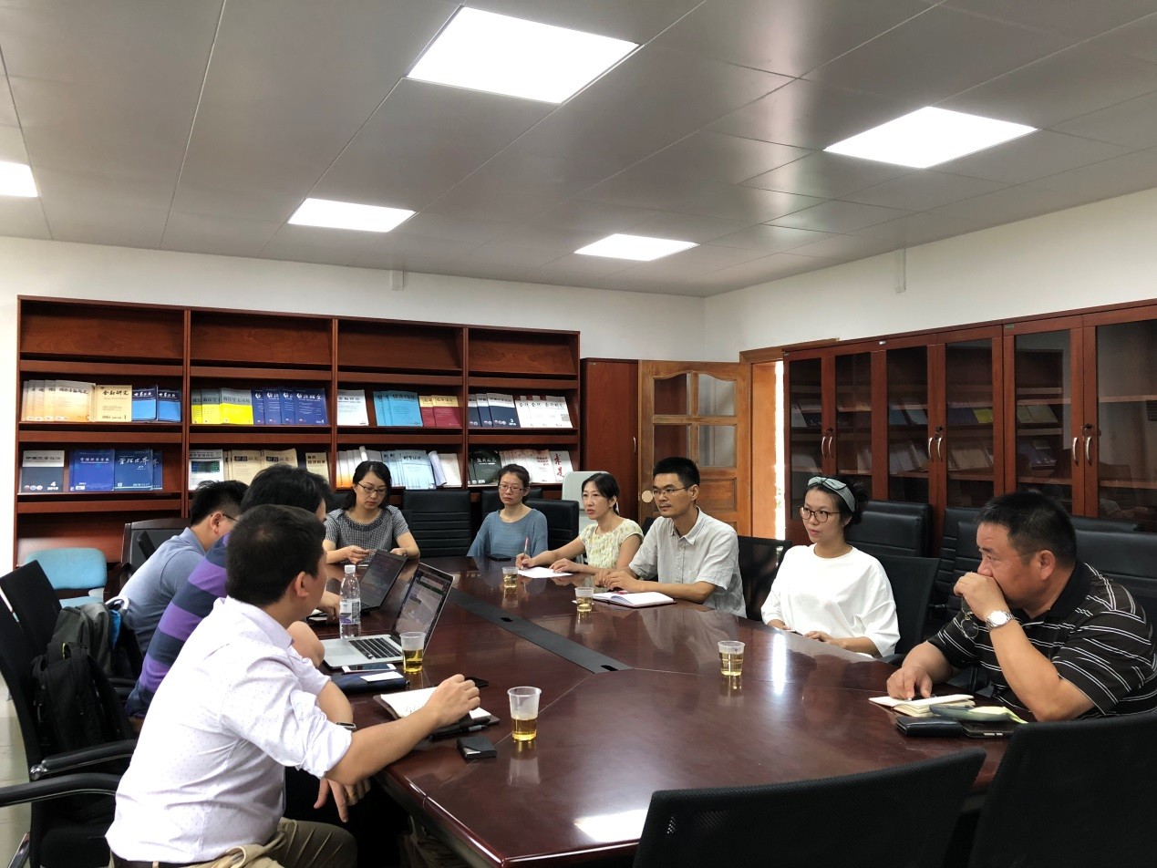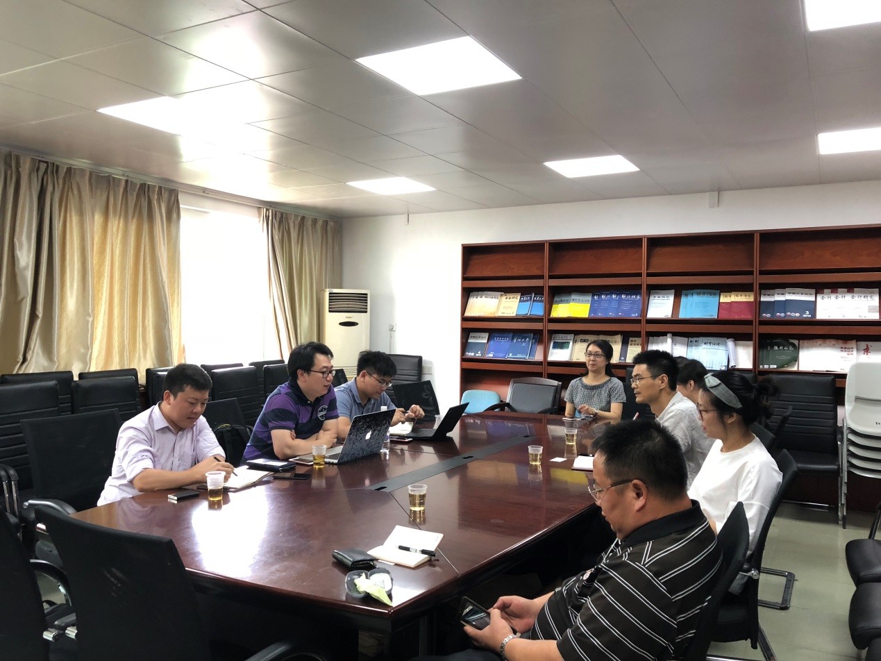 6月6日下午,浙江核新同花顺网络信息股份有限公司院校行业总监周谨先生等一行三人来公司交流校企协同育人项目建设。beet365副经理陈辉、教师蒋序标、刘昊虹、王颖、欧阳敏、罗娟等在院会议与来访的客人进行了交流学习。
