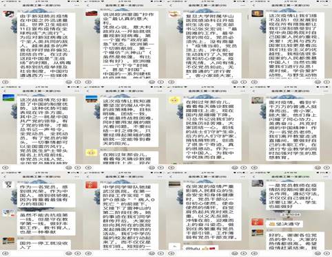 李欢丽老师例举了家人过年期间在意大利看到的真实场景,街上无人戴口罩,人群密集,民众不采取任何措施,真切体会到了中国为全世界争取到时间,但西方国家由于不重视造了目前混乱的局面,深深体会到背靠最强有力的祖国给予的无限安全感。