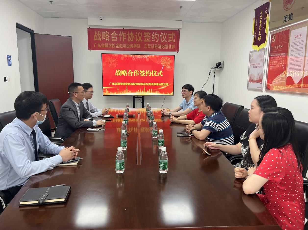 为落实全省高质量发展大会精神,加强校企合作,推动产教深度融合,2023年4月20日,公司与东莞证券清远营业部举行战略合作框架协议签订仪式。公司党总支书记颜佩仪,beet365副经理李日新,公司党总支副书记黄镜秋和beet365辅导员车明珍、韦筱、陈晓贤出席仪式。东莞证券清远营业部总经理柯天池、副总经理黄大伟、总经理助理魏志鹏等对颜佩仪书记一行表示热烈欢迎。