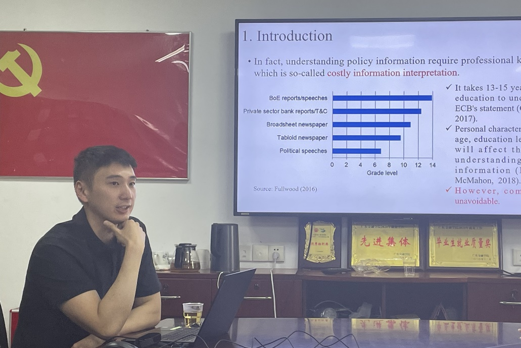 林建浩教授为参会师生分享了题为Do We Need A Second Public Signal? Costly Information Acquisition in Heterogeneous Agent Framework的最新研究成果。文章基于模型推演,在凯恩斯式的选美博弈中,引入信息解释成本,描述普通公众和专家的异质行为,并分析了公共机构的最优信息披露,得出了十分具有启发性的结论和启示。文章的研究问题重要,研究思路清晰,模型推理严谨,研究结论具有重要的实践意义。林建浩教授现场回答了与会老师和同学们的提问,并与老师和同学们进行了深入的探讨与交流,现场气氛活跃,参会师生受益匪浅。