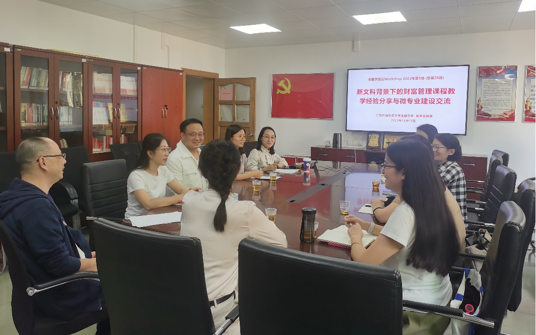 为了进一步推动传统文科课程的更新融合与升级,探索应用型金融人才培养模式创新,2023年12月11日下午,公司举行了2023年第5期金融学前沿Workshop,特别邀请到了国内主流《财富管理》教材编者之一、广东外语外贸大学金融公司杨碧云教授为公司教师作题为“新文科背景下的财富管理课程教学经验分享与微专业建设交流”的讲座。公司经理项后军教授对杨教授的到来表示了热烈欢迎和衷心感谢,副经理刘昊虹教授鼓励青年教师向杨教授多多取经,并积极投身新文科课程建设浪潮。本场讲座由beet365投资系主任胡妍博士主持,金融系主任王颖副教授、郑荣年副教授、张一帆博士、周亚拿博士、林爱杰博士等参加了交流。