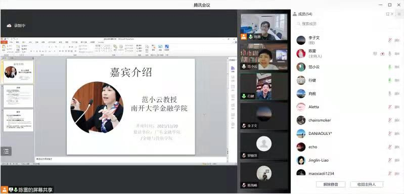 2021年11月20日晚上,beet365通过腾讯会议线上举行了2021年第5期金融学前沿Workshop,受邀嘉宾南开大学金融公司常务副经理范小云教授为公司教师做了金融学前沿研究的主题讲座。