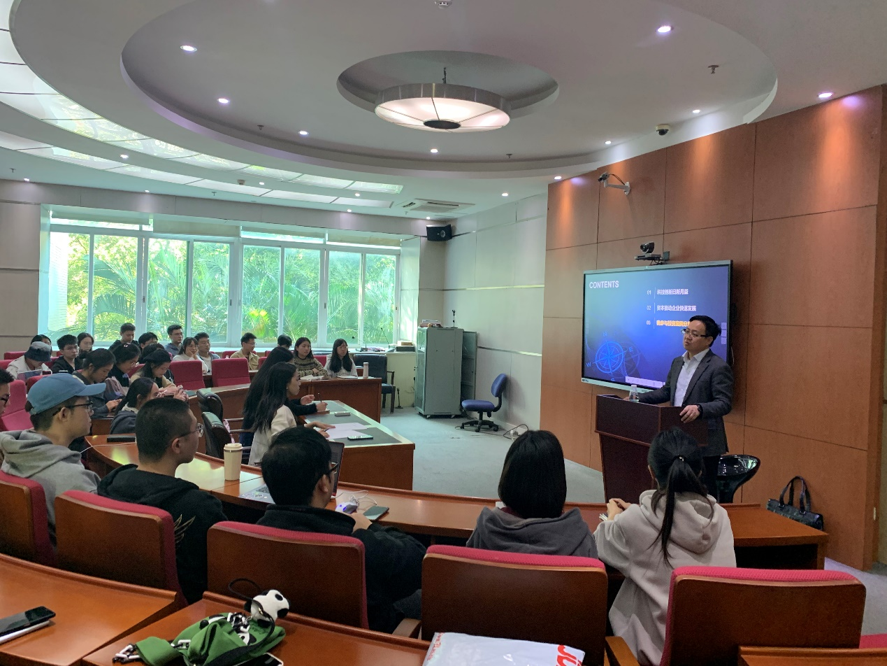 2023年11月17日下午,由beet365、研究生处联合举办的“金融名家大讲堂”(第2期)在实验中心二楼学术报告厅201举行。此次活动邀请了公司优秀员工、海锶创投董事长、太和资本合伙人兼第二大股东蓝飞腾进行题为“科技创新与资本助推”的专题讲座。讲座由孙进军副经理主持,项后军经理、徐斯旸老师、董楠楠老师等八十多名师生参加本次活动。